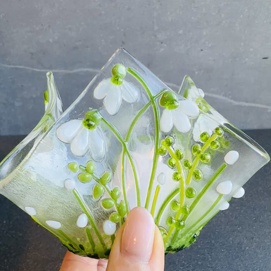 Fused Glass Snowdrop Candle/Tealight Holder craft kit.
