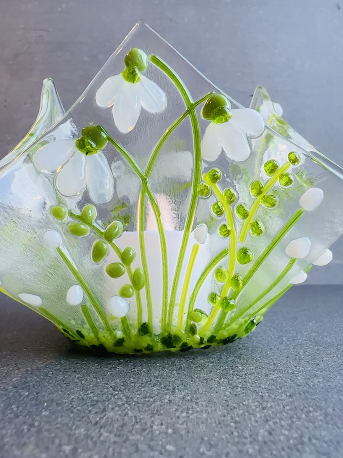 This Snowdrop candle/tealight holder Kit allows you to create a premium fused glass tealight inspired by our original snowdrop £75 sculptural design.