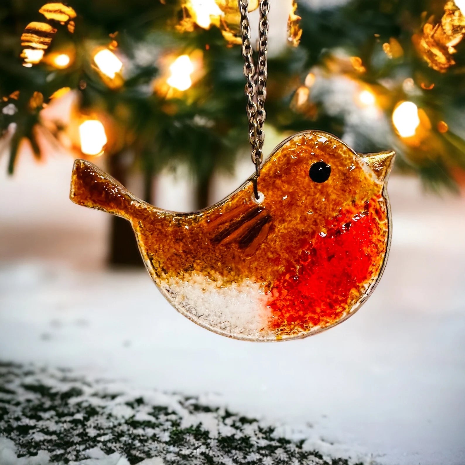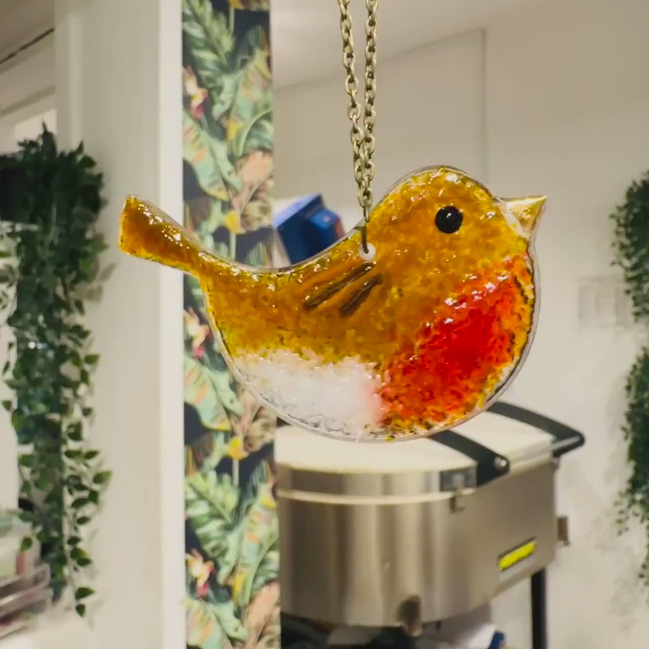 These Fused glass decorations would look around your home or garden. They have lots of lovely detail including gold lustre beaks.