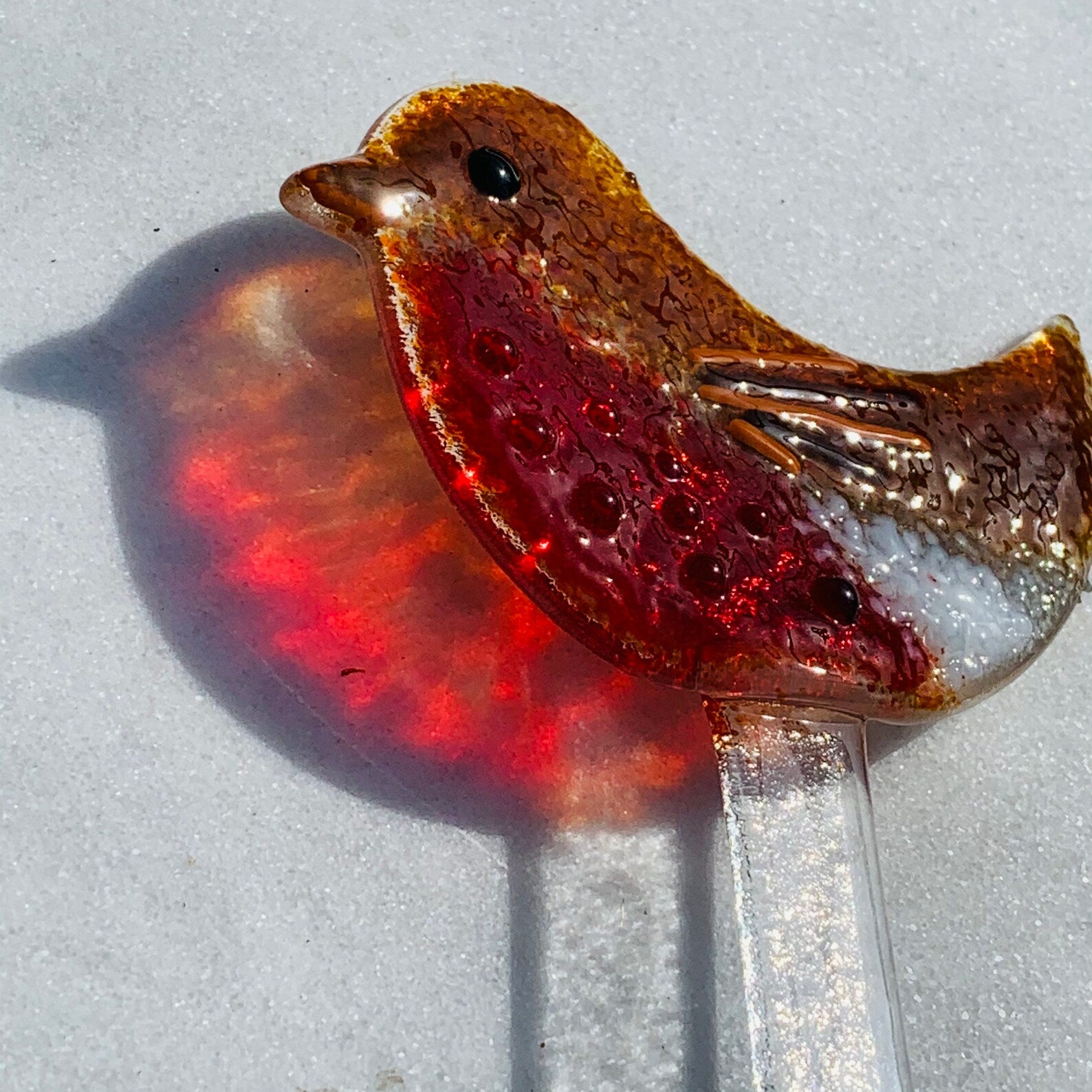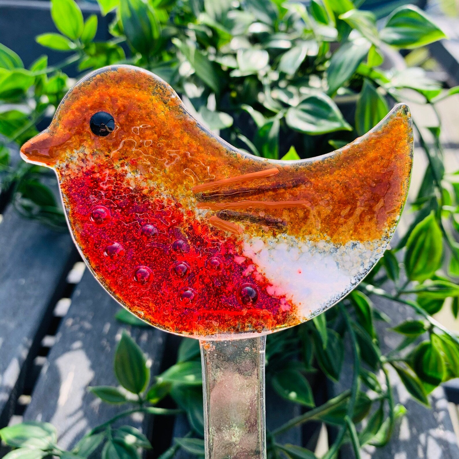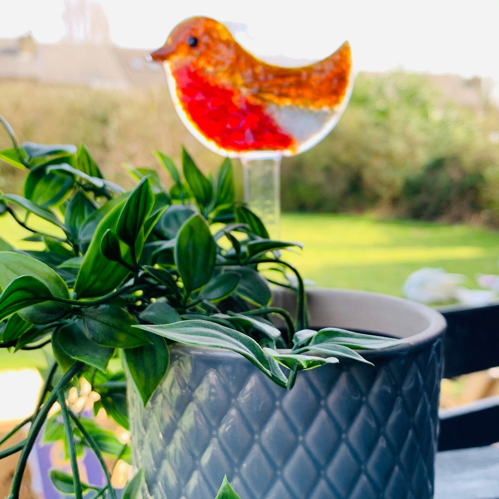 Handmade glass robin plant pot decoration, suitable for indoor and out door, makes the perfect present for any gardener or plant lover.