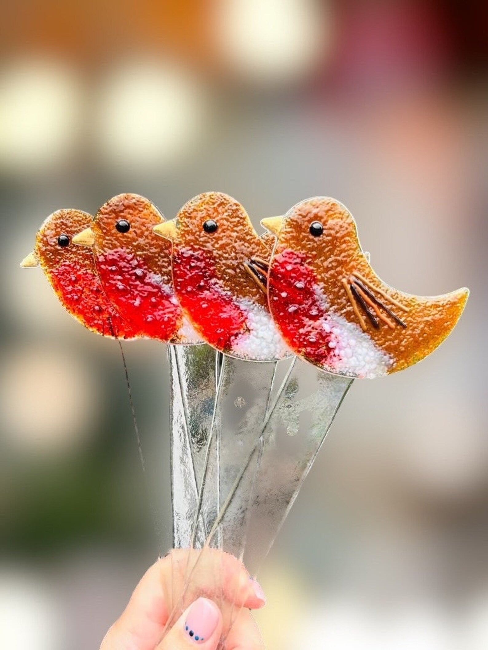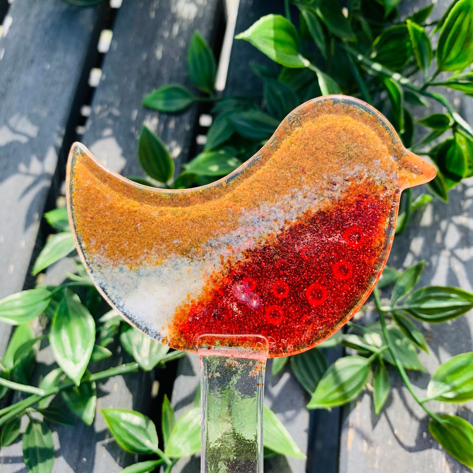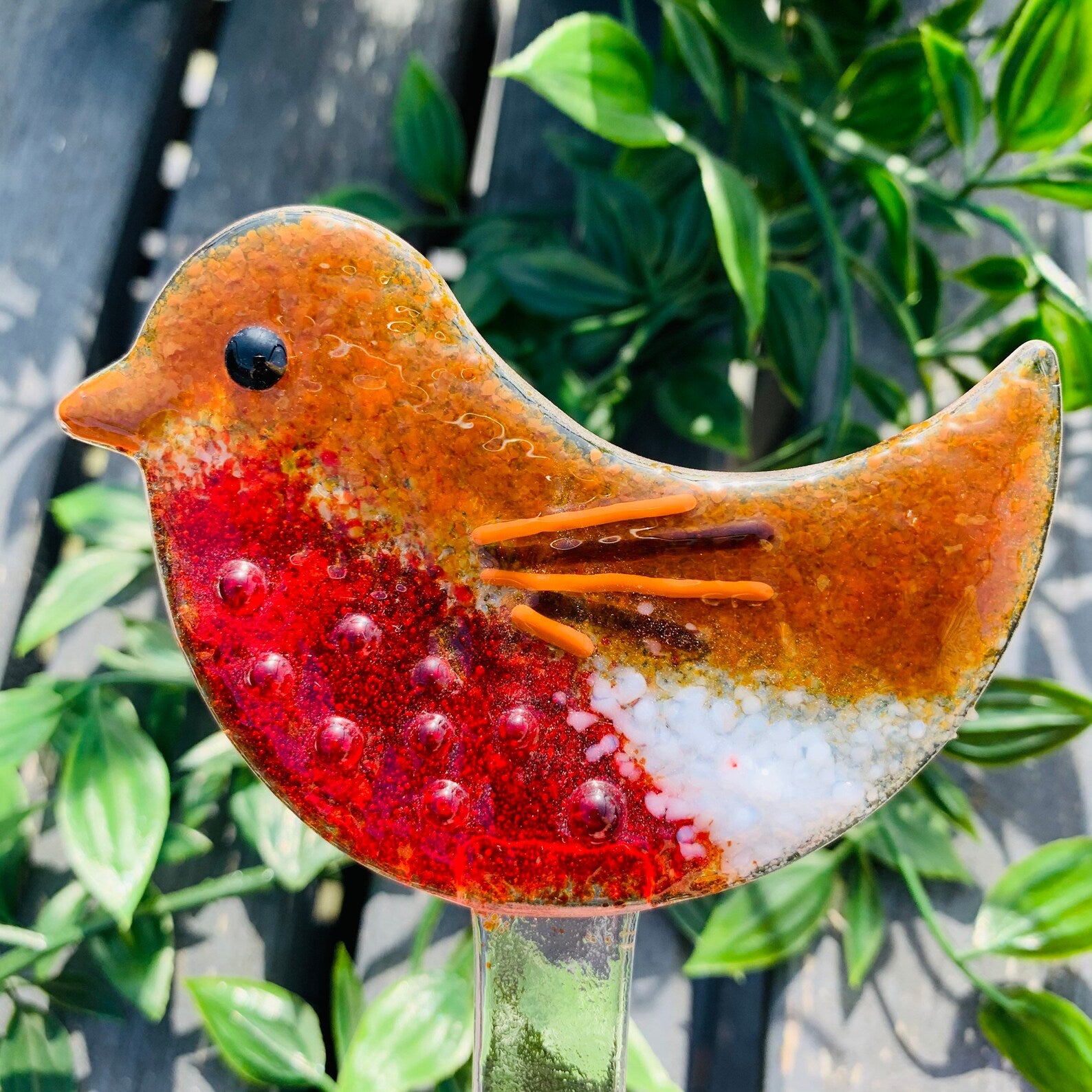 Handmade glass robin plant pot decoration, suitable for indoor and out door, makes the perfect present for any gardener or plant lover.
