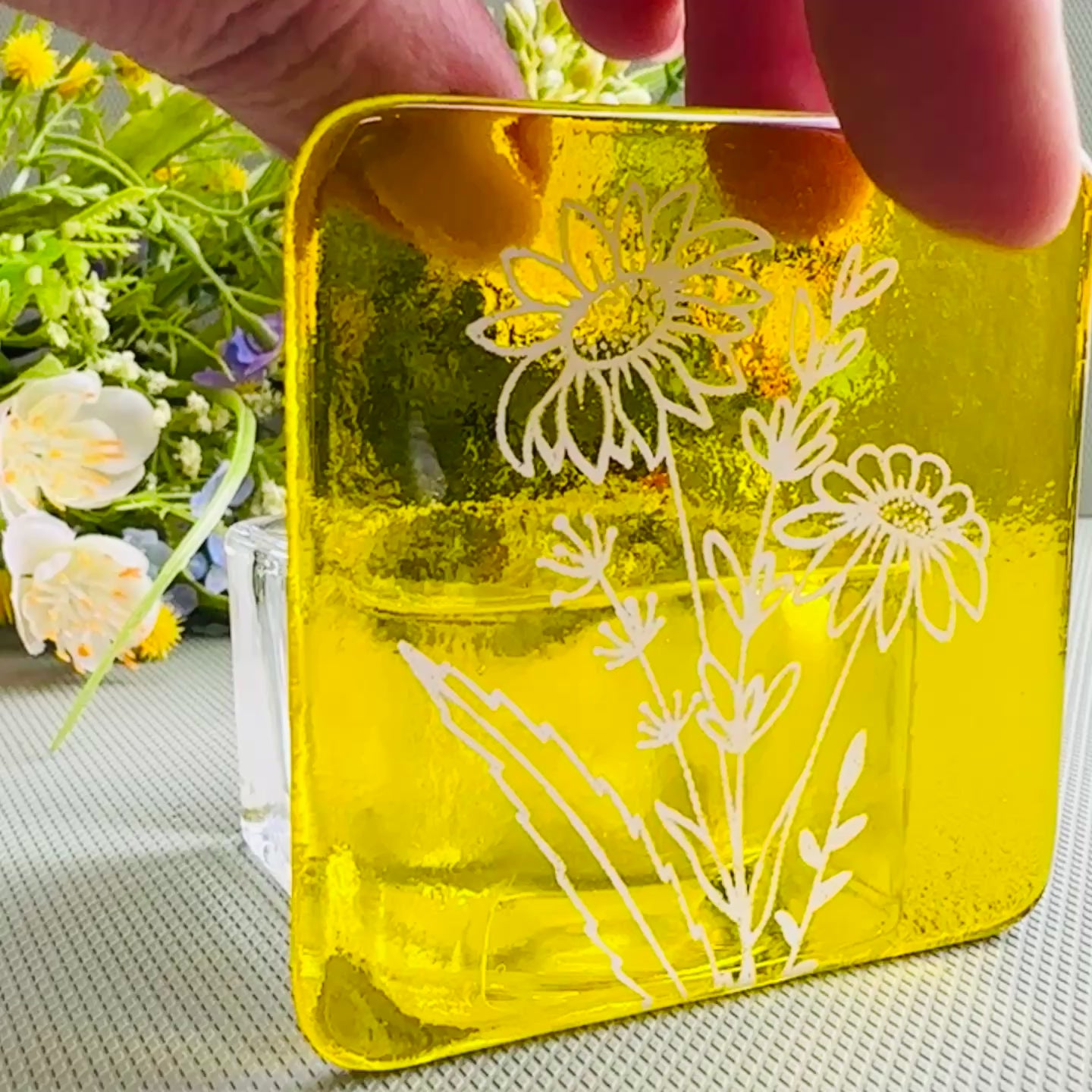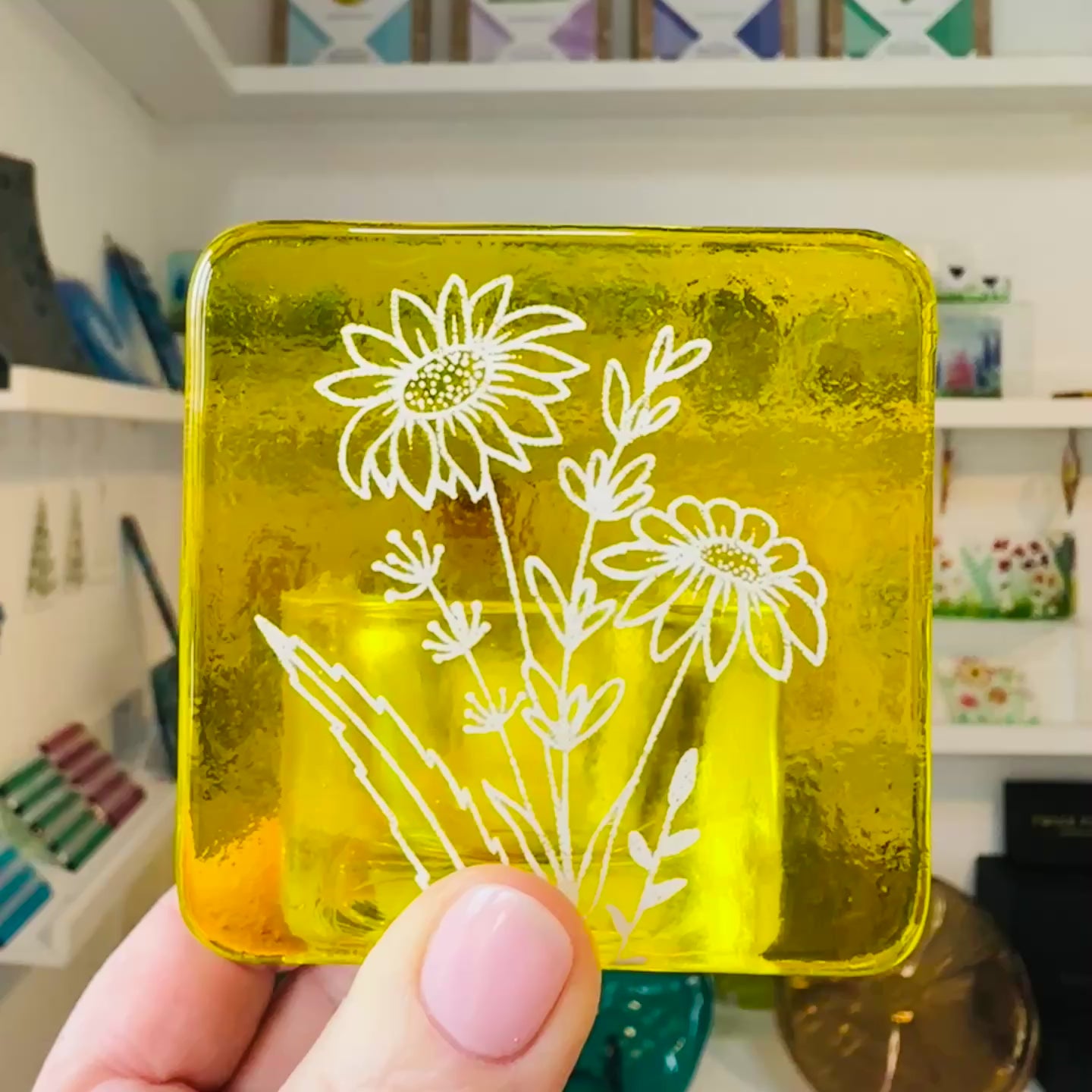 SALE Birth Flower fused glass tealight , Daisy, Rose